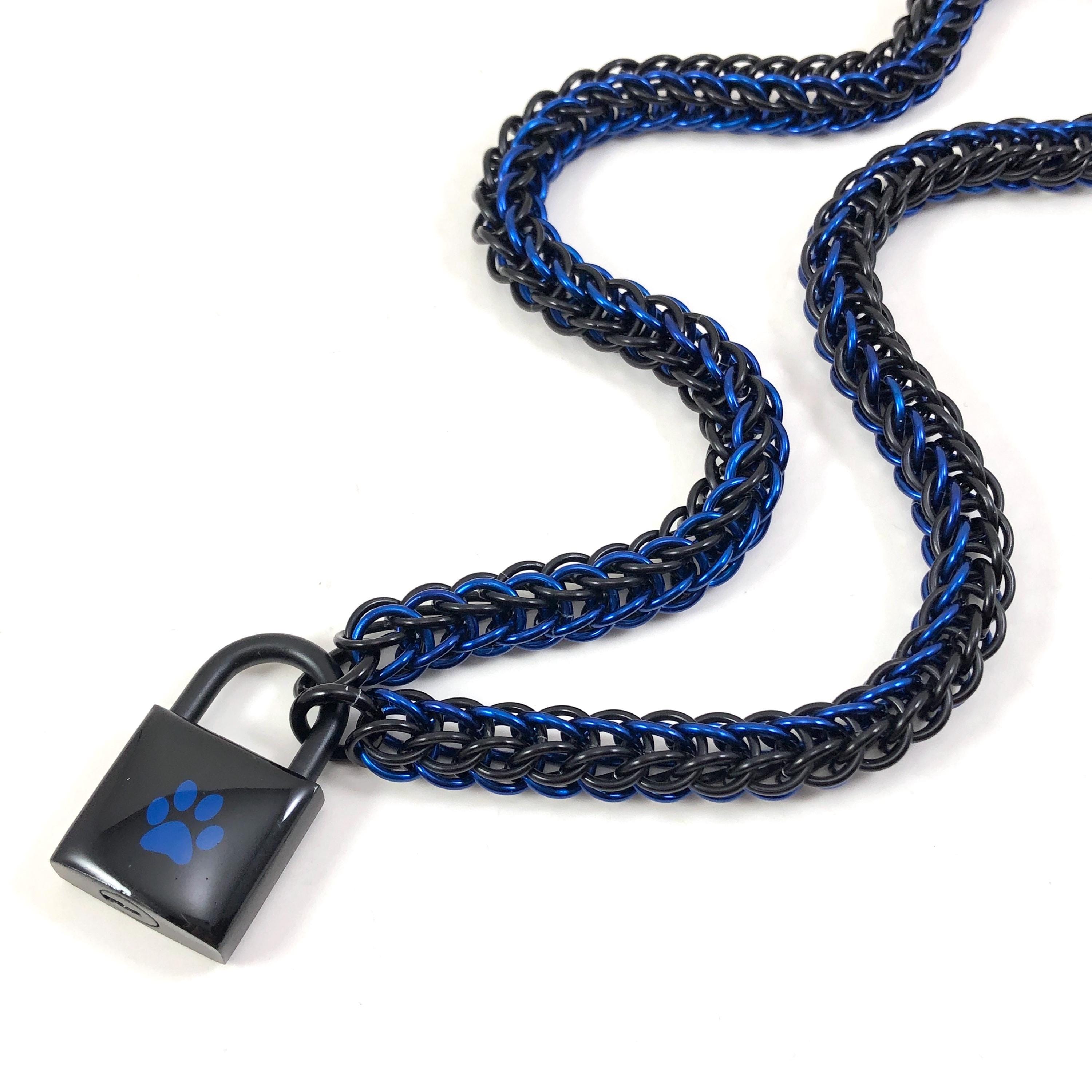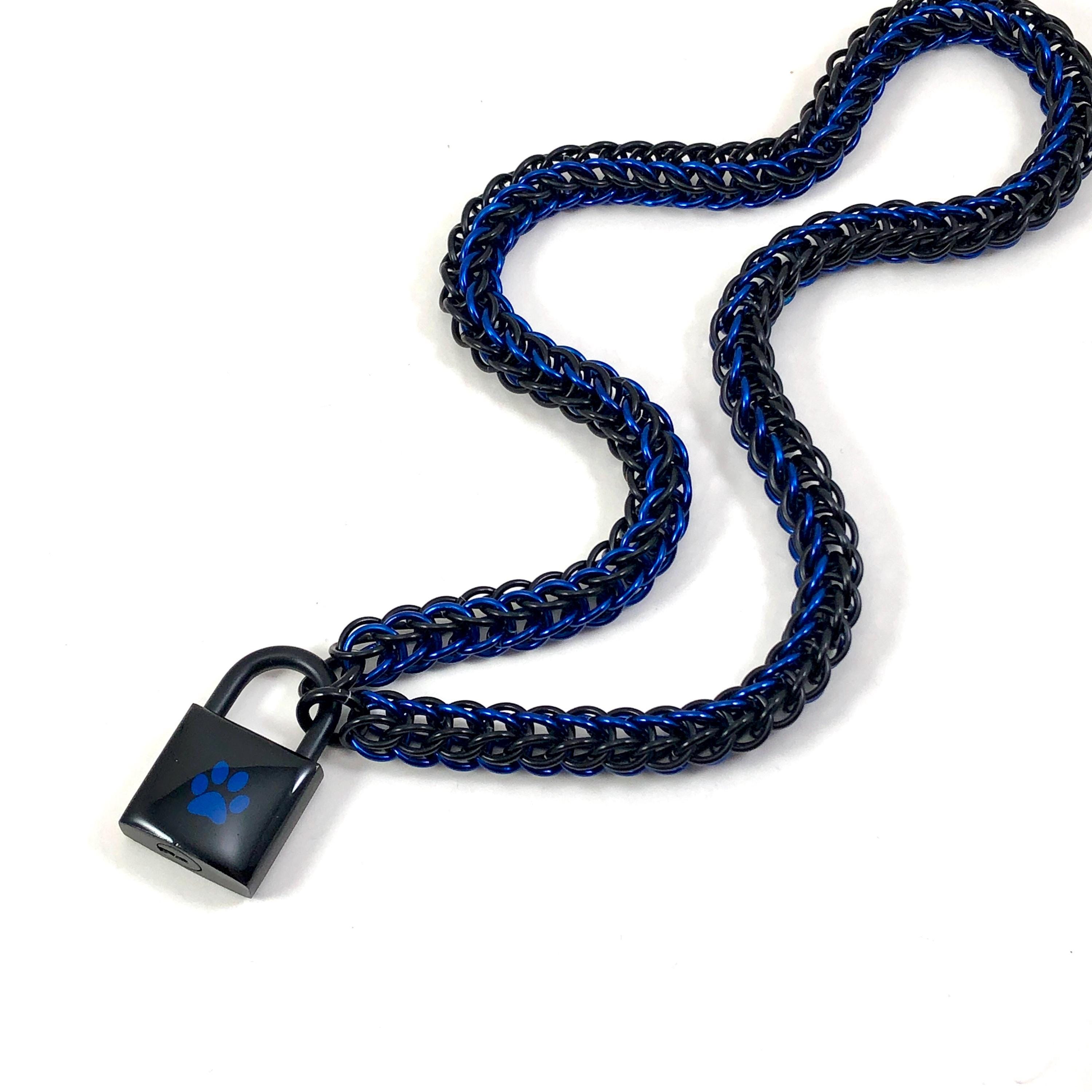 The sleek, serpentine chain is hand woven using hypoallergenic anodized aluminum rings in jet black and a rich, vibrant cobalt blue. It's so lightweight and comfortable, you'll almost forget it's there! It cleans up easily too! Just a bit of soap and water will have it looking good as new :) Wear it in the shower and kill two birds with one stone - just be sure to dry your lock thoroughly afterwards!